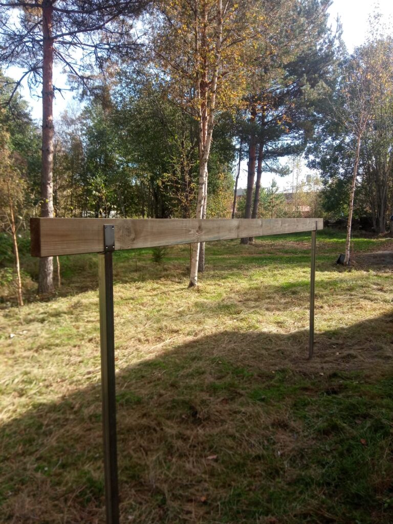 Kestävä teline mattojen kuivaukseen. Helppo asentaa. Soveltuu myös ilman betonivaluja.